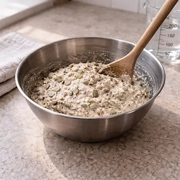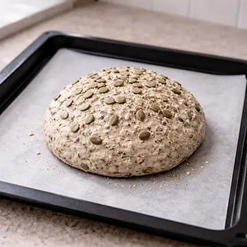 Teig nach Belieben mit ganzen Körner oder Saaten mischen oder belegen