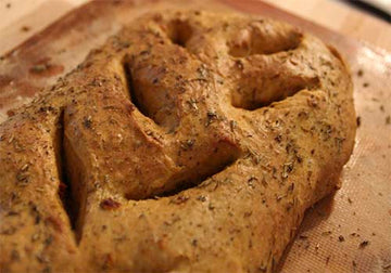 Form a flatbread and bake your protein fougasse for 55 – 60 minutes.