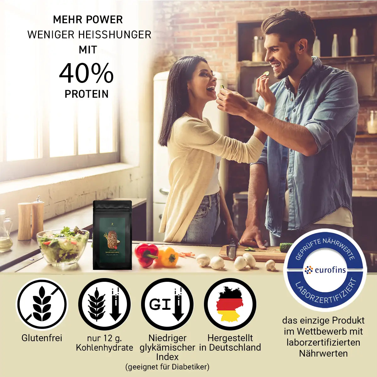 Viele herkömmliche Brote enthalten viele Kohlenhydrate und kaum Protein. Das sorgt für Blutzuckerschwankungen und wenig Sättigung. Unser Hafer Eiweißbrot funktioniert anders: 40% Protein pro 100 g – ideal fürs Training und Muskelaufbau