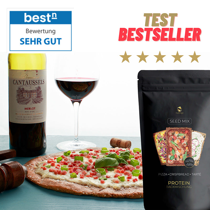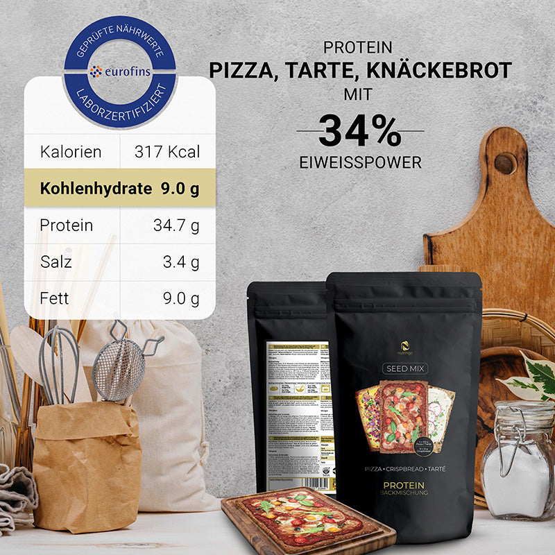 Du liebst Pizza, willst aber auf Kohlenhydrate verzichten? Unser Seed Mix Protein Pizza-Teig ist der perfekte Low-Carb-Allrounder: für Pizza, Tarté, Flammkuchen oder knuspriges Crispbread – mit nur 10 % Kohlenhydraten und 31 % Protein.